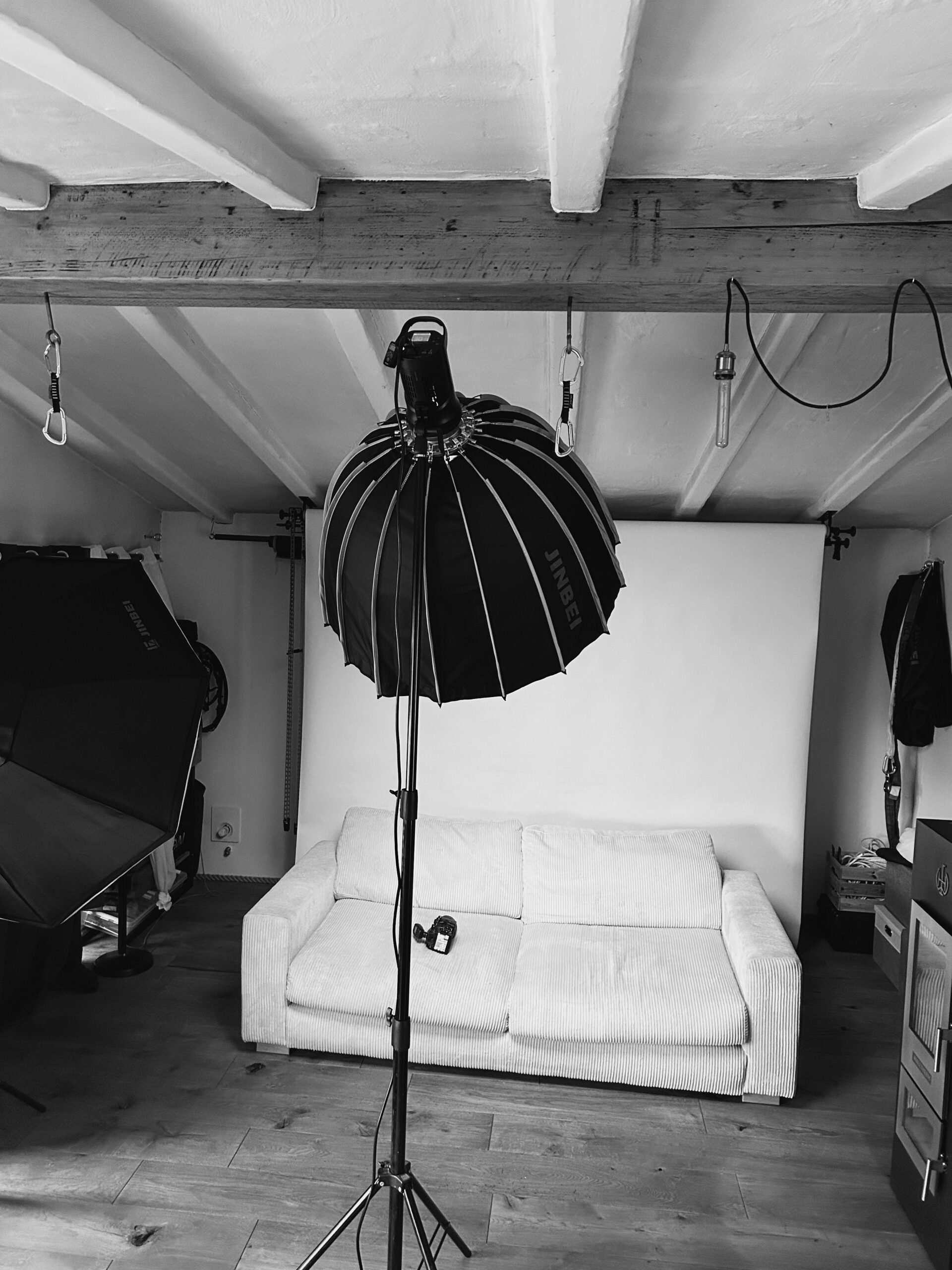 Durch die nach Süden ausgerichteten, großzügigen Fenster flutet natürliches Licht den Raum und lässt jedes Motiv lebendig werden. Ja, das Atelier ist ein wenig krumm und schief – genau das verleiht ihm seinen unverwechselbaren Charakter und macht jedes Foto zu etwas Besonderem. Und nicht zu vergessen: Unsere vier Stubentiger halten Gesellschaft, sorgen für entspannte Momente und bringen einen verspielten Schwung in jedes Shooting.